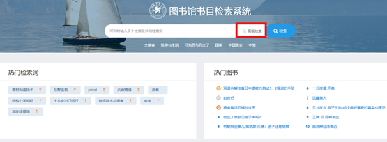 (1)打开图书馆主页,点击“常用服务”中的“馆藏书目检索”;或直接访问https://libspace.haut.edu.cn/space/,点击检索框右侧的“高级检索”。