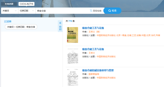 (2)点击“CADAL电子书“,输入检索词进行检索。